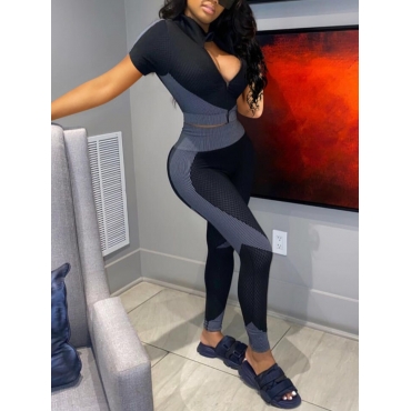 Lovely Sportswear Print Patchwork Skinny Grey Two Piece Pants Set
