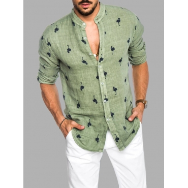 Lovely Casual Turndown Collar Animal Print Green Men Shirt