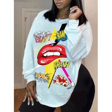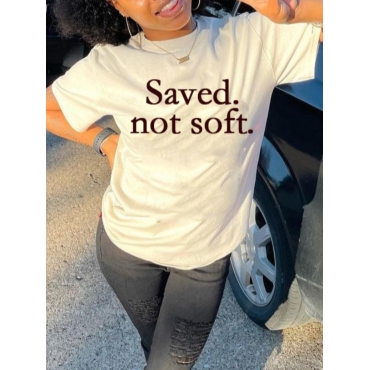 Lovely Street O Neck Letter Print White Plus Size T-shirt