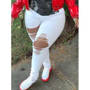 Lovely Street High-waisted Ripped White Plus Size Jeans