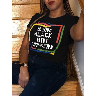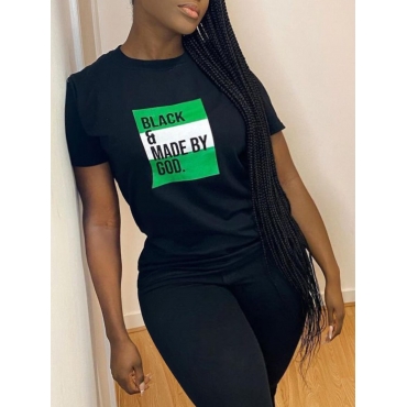 Lovely Casual O Neck Letter Print Black Plus Size T-shirt