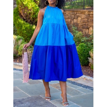 Lovely Casual Gradient Fold Design Blue Mid Calf Dress