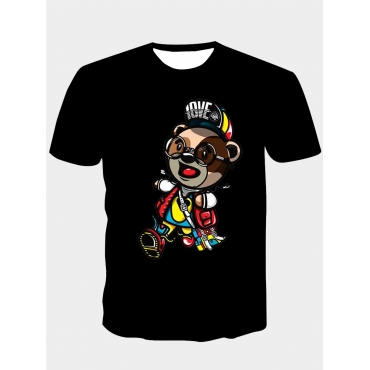 Lovely Casual O Neck Cartoon Print Black Men T-shirt
