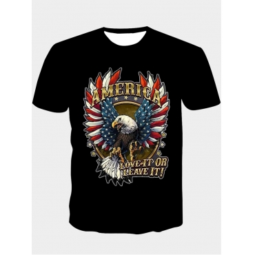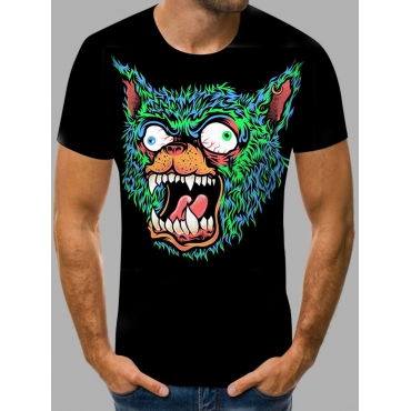 Lovely Casual O Neck Animal Letter Print Black Men T-shirt