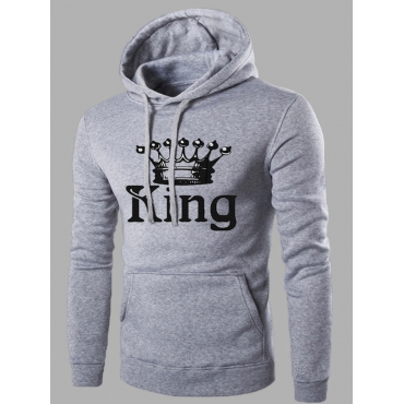 Lovely Casual Crown Letter Print Light Grey Men Hoodie