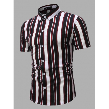 Lovely Work Turndown Collar Striped Black Men Shirt