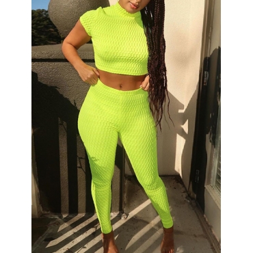 Lovely Casual Half A Turtleneck Skinny Green Two Piece Pants Set