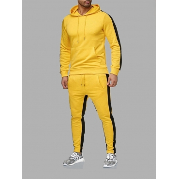 Lovely Sportswear Patchwork Drawstring Yellow Men Two Piece Pants Set