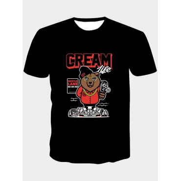 Lovely Casual O Neck Cartoon Letter Print Black Men T-shirt