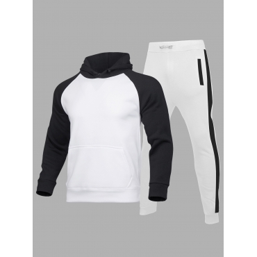 Lovely Sportswear Hooded Collar Color-lump White Men Two Piece Pants Set