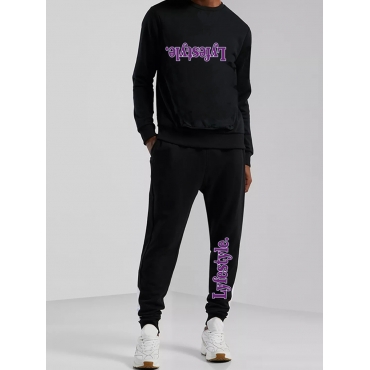Lovely Casual Letter Print Black Men Two Piece Pants Set