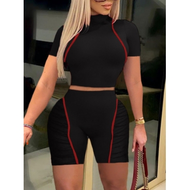 Lovely Casual Turtleneck Patchwork Black Plus Size Two-piece Shorts Set