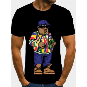 Lovely Casual O Neck Cartoon Print Black Men T-shirt