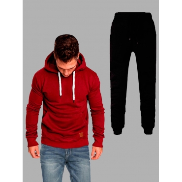 Lovely Casual Hooded Collar Pocket Design Wine Red Men Two Piece Pants Set