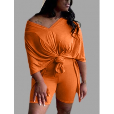 Lovely Casual V Neck Loose Croci Plus Size Two-piece Shorts Set