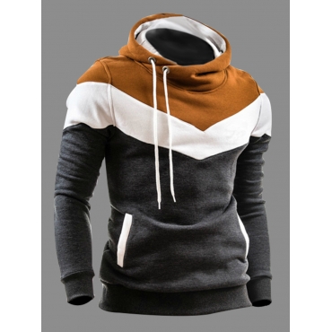 Lovely Casual Color-lump Patchwork Pocket Design Dark Grey Men Hoodie