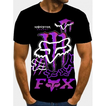 Lovely Casual O Neck Graffiti Print Black Men T-shirt