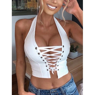 Lovely Street Bandage Hollow-out Design White Camisole