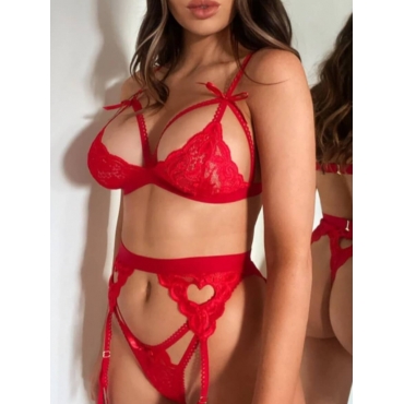 Lovely Sexy See-through Bandage Design Red Plus Size Bra Sets
