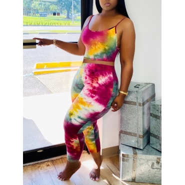 Lovely Casual Tie Dye Rose Red Two Piece Pants Set