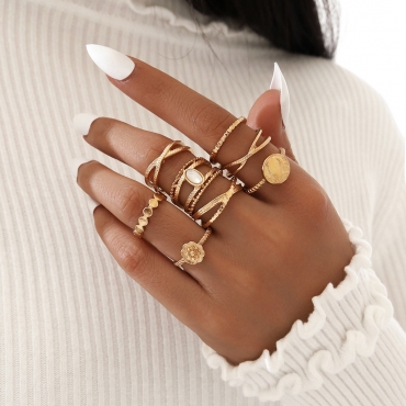 Lovely Chic Asymmetrical Patchwork 8-piece Gold Ring
