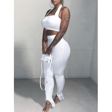 Lovely Sexy Backless Split White Two Piece Pants Set