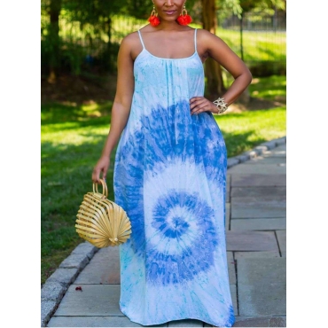 Lovely Casual Tie-dye Baby Blue Floor Length Plus Size Dress