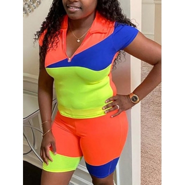 Lovely Casual Turndown Collar Color-lump Patchwork Yellow Two Piece Shorts Set