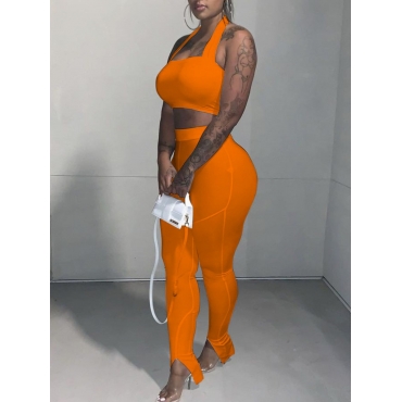 Lovely Sexy Backless Split Croci Two Piece Pants Set