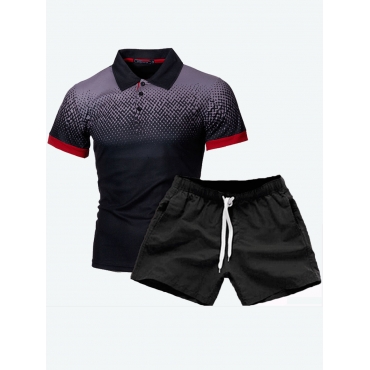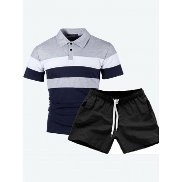Lovely Casual Color-lump Patchwork Light Grey Men Two Piece Shorts Set