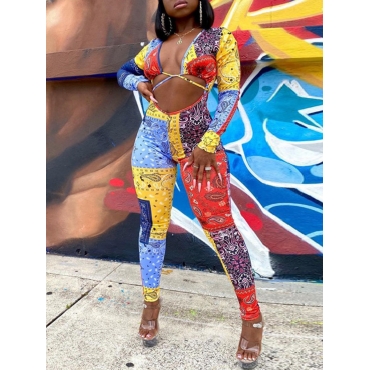 Lovely Street Hollow-out Print Patchwork Multicolor One-piece Jumpsuit