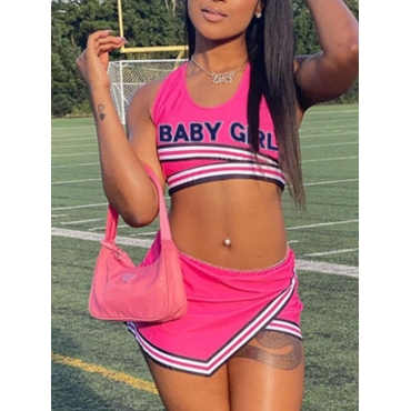 Lovely Sportswear Letter Print Patchwork Asymmetrical Pink Two Piece Shorts Set