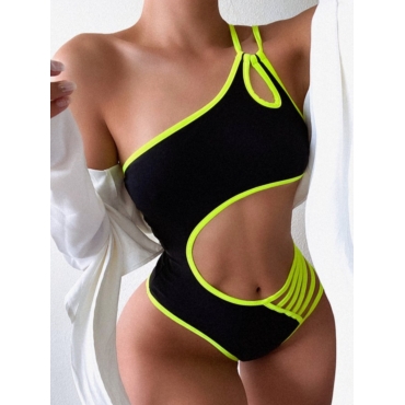 Lovely Chic One Shoulder Bandage Hollow-out Design Black One-piece Swimsuit