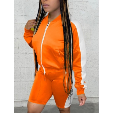 Lovely Sportswear Zipper Design Patchwork Croci Two Piece Shorts Set