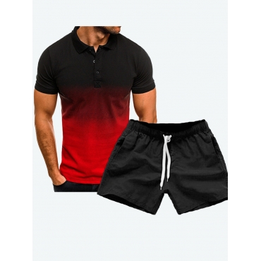 Lovely Trendy Gradient Drawstring Red Two Piece Shorts Set