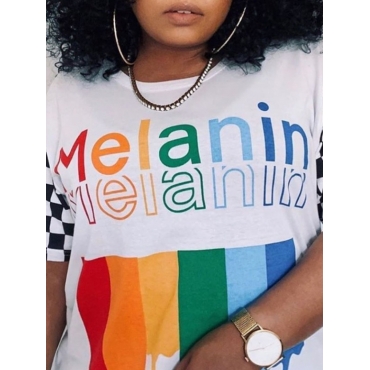 Lovely Casual O Neck Letter Print Patchwork Multicolor Plus Size T-shirt