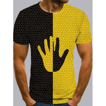 Men lovely Leisure O Neck Print Patchwork Yellow T-shirt