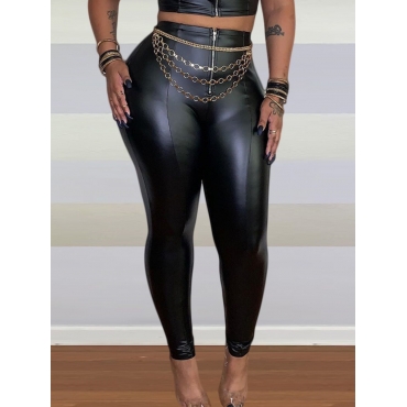 Lovely Sexy Fold Design Skinny Black Plus Size Pants