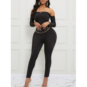 Lovely Stylish Dew Shoulder Black One-piece Jumpsuit