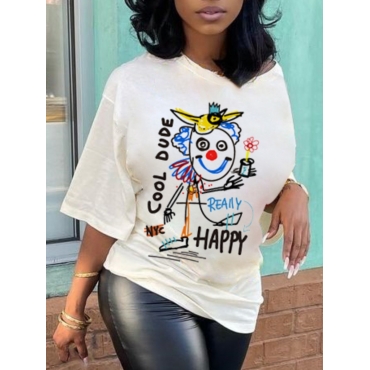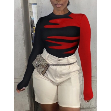 Lovely Casual O Neck Print Patchwork Black T-shirt