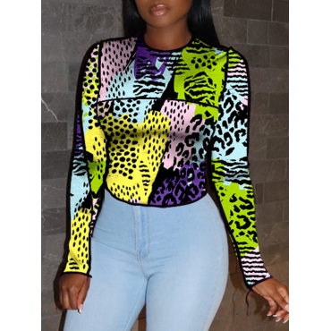 Lovely Casual O Neck Leopard Print Green T-shirt(No-positioning Printing)