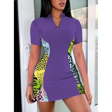 Lovely Trendy Leopard Print Patchwork Purple Mini Dress