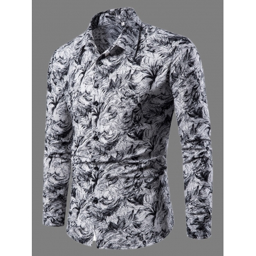 Lovely Casual Turndown Collar Floral Print White Men Shirt