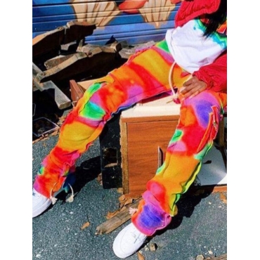 Lovely Street Tie-dye Fold Design Multicolor Pants