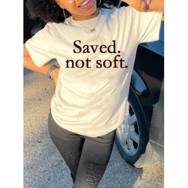 Lovely Street O Neck Letter Print White T-shirt