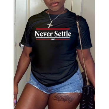 Lovely Casual O Neck Letter Print Black T-shirt