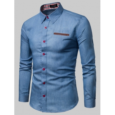 Lovely Casual Turndown Collar Button Design Baby Blue Men Shirt