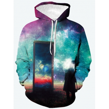 Lovely Trendy Hooded Collar Starry Sky Print Multicolor Men Hoodie