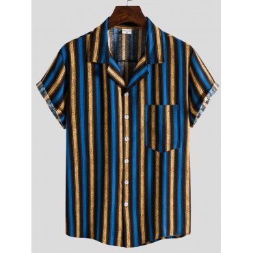 Lovely Casual Turndown Collar Striped Blue Men Shirt