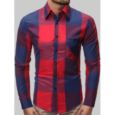 Lovely Casual Turndown Collar Plaid Print Patchwork Red Men Shirt
